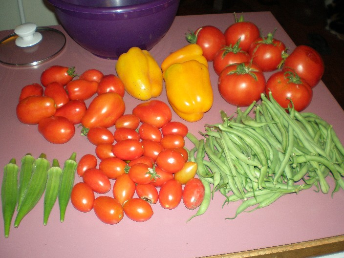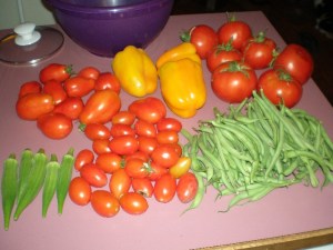 That’s the biggest quantity of big boy tomatoes I’ve picked at one time so far. Tonight I turned them all into diced tomatoes for the freezer. That was an extremely time-consuming and messy process. I’ll have to post about that some other time.