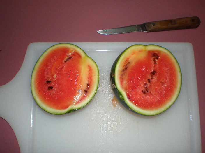 It was actually a little too ripe. I cut it up and got about one cup of chopped watermelon. I don’t think I will actually eat it though. I did taste a small piece and it was only fair. You can’t tell from the picture but it looked a little orange around the edges.