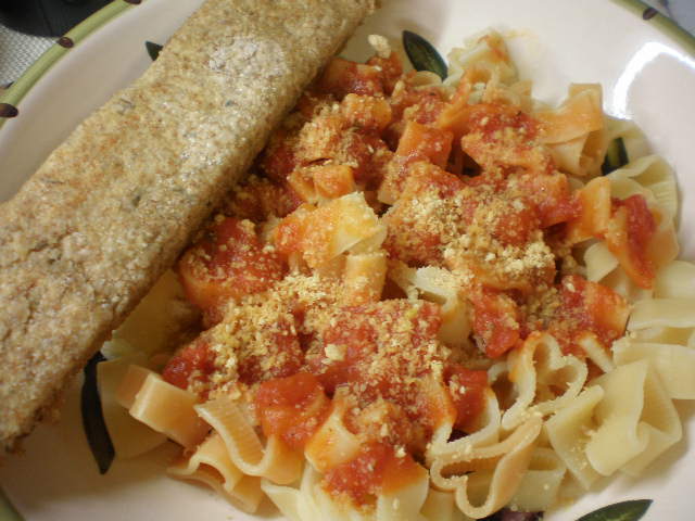 We decided to have them for dinner last night. I also made homemade garlic breadsticks and vegan parmesan cheese.