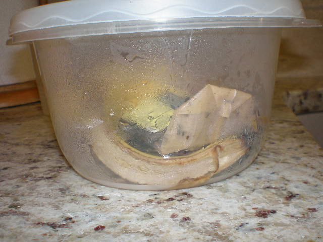 Whenever I eat something that has a scrap I can save, I get out that container and throw it in. Apple cores, orange peels, banana peels, etc. I also throw tea bags and coffee grounds in there. I even bring my peels and tea bags home from work in my rinsed out lunch containers:
