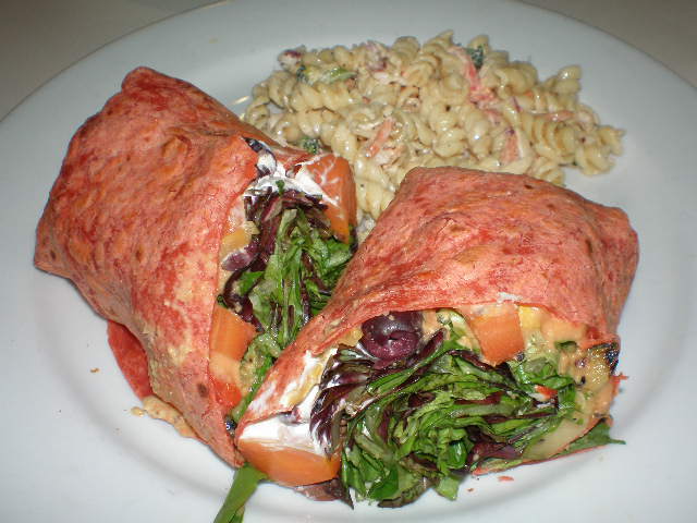 The wrap was light on the grilled veggies and heavy on the lettuce. And there was some kind of creamy dressing that I wasn’t expecting. Looking back at the menu it must be the tatziki sauce (?). I’ll have to ask more about that next time.
