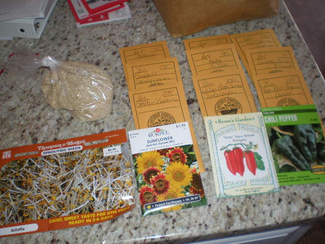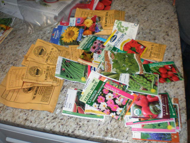 When we got home Friday night we dug out all the seeds we have from last year so we could see what we need to buy. These are the seeds we had before we went seed shopping on Saturday.