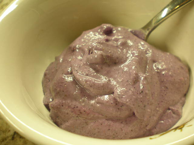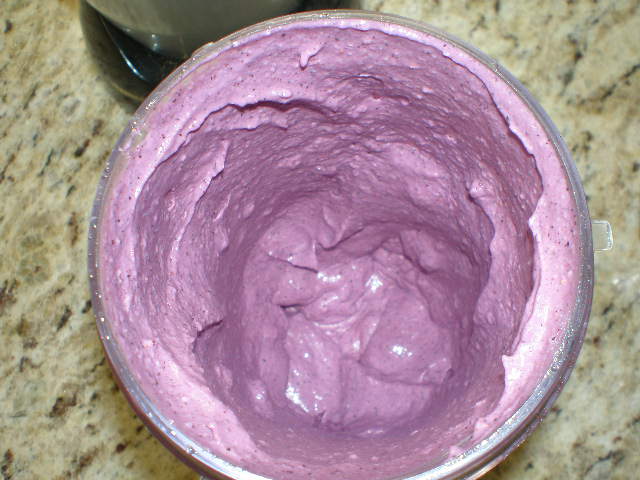 The first time I made this recipe I did not have any frozen bananas. So I substituted some frozen blueberries instead. Here’s how I made it:
