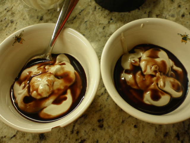 And since I didn’t have Katie’s hot-chocolate crust, I made homemade chocolate syrup to drizzle over the top.