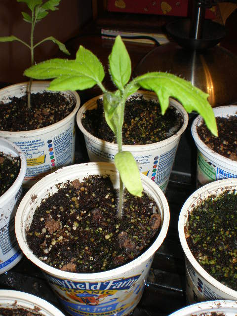 Some of the peppers have started sprouting. They are not as big as the tomatoes: