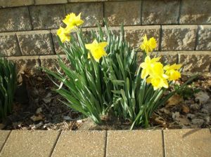 Sunday I spent the morning cleaning. Then we went out for errands and grocery shopping. When we got back it was a lot warmer and the daffodils were looking really pretty.