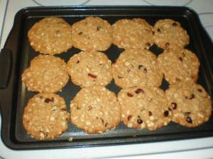 After dinner we relaxed for a bit, but it wasn’t long before we were jonesing for something sweet. I decided to make the Plum Walnut Cookies from The Kind Life. I used dried cranberries instead of plums.