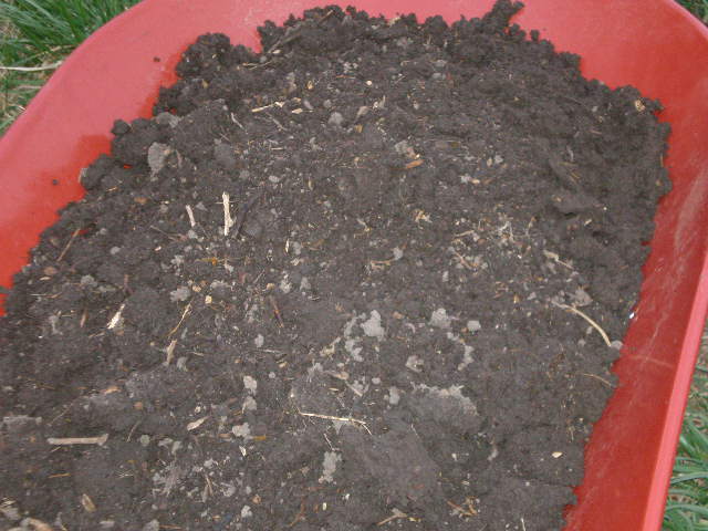 Two days later you are ready to plant! Benzo shoveled out all the compost that was ready to be used into the wheelbarrow.