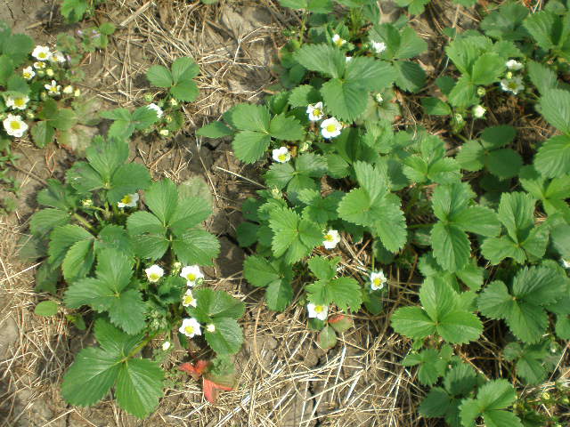 Below are my strawberry plants! Look at all the blossoms! Each blossom will become a delicious strawberry and each delicious strawberry will end up in my belly. 🙂