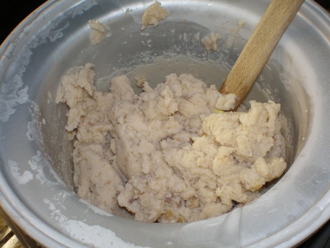 Once the sugar is combined into the butter and the nuts are looking pretty good, add them to the milk mixture.  I really have no idea how long I cooked them.  Cook them as long as you want, just don’t burn them!