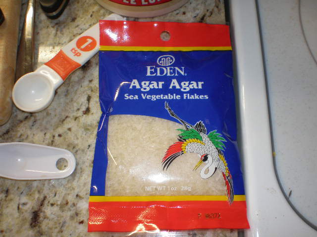 Then you make the sauce for the top. The sauce calls for Agar Agar, which is a vegetarian form of gelatin. I’ve been wanting to get some for awhile to do some experimenting. If you didn’t know, gelatin is definitely not a vegetarian food. Click here to see why.