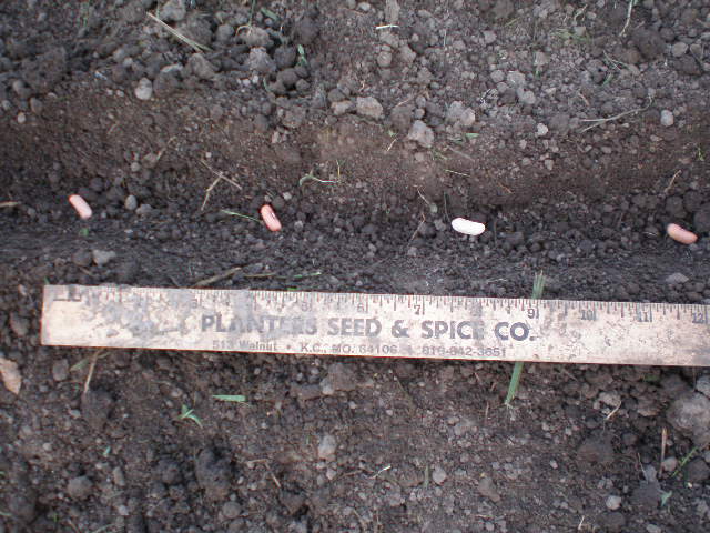Did the furrow with the end of your rake or other garden tool, drop in the seeds 4 inches apart and cover them back up.  Make sure to mark your row so you remember where it is.  Then water them in really well.  The water starts the germination process.  They should sprout in about a week.  I’ll post pictures of mine when they do.