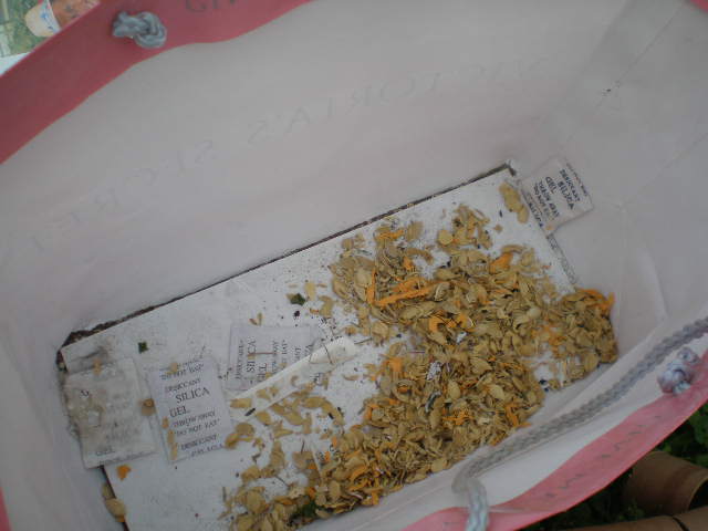 At the bottom of the bag was a pile of seed shells and bits of paper. 😦