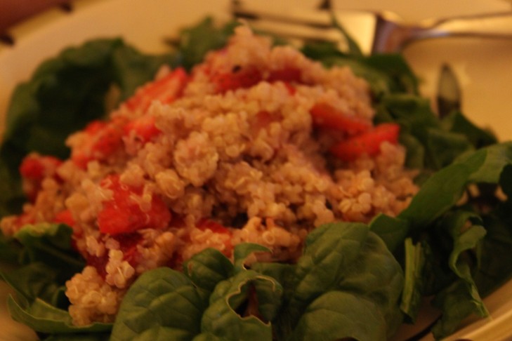 For the first of the strawberry recipes, I whipped up this strawberry-quinoa salad on Saturday night for dinner.  I was inspired by the three bean quinoa salad I made a few weeks ago.