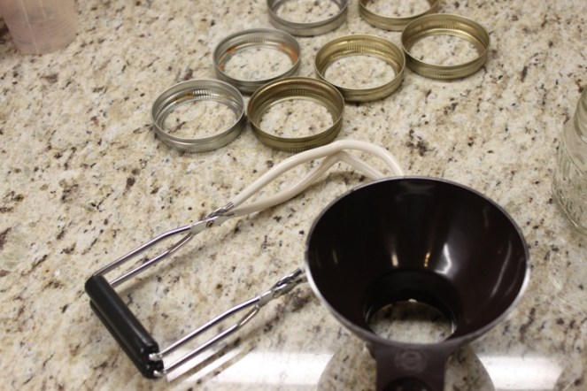 2. Jars. Glass canning jars come in several different sizes. The smallest is a jelly jar (4oz), then there’s a half pint (8oz), a pint (16oz) and a quart (32oz). I use all three of the smaller ones depending on what I’m canning, but I never use the quarts because there are only two people in the Homemade Household. A quart jar of anything would go bad before we could use it all.