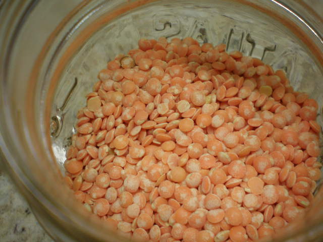 This recipe called for red lentils instead of the usual brown.  I must say, red lentils are way cuter than brown lentils!