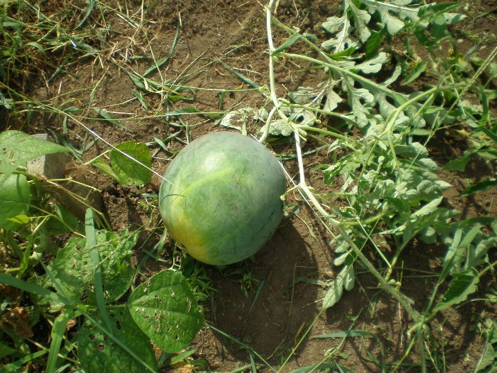 A pretty good sized watermelon! I had no idea this guy was hiding in all the weeds so I was pretty excited to find him. He’s about the size of a bowling ball. I was able to get all the weeds cleared away: