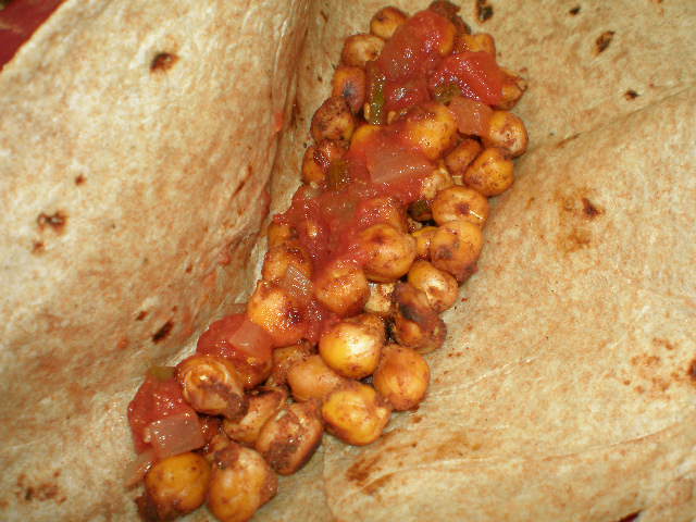 So I must confess that the heat makes me lazy. When I got home from work I laid around and did nothing for about 2 hours. I may have even taken a short nap. I finally got my rear up and started making dinner at 8pm. I decided to make chickpea tacos according to my meal plan even though it was kind of late. The chickpea taco recipe is from Happy Herbivore.