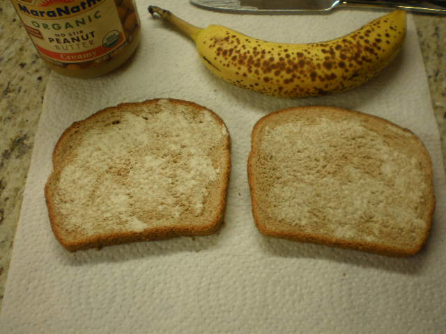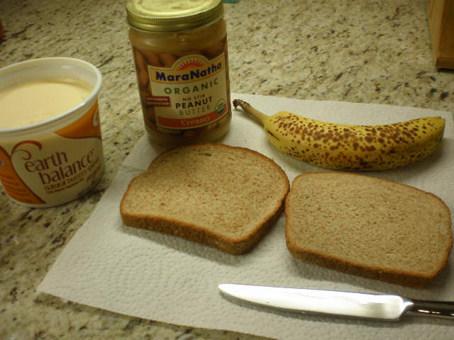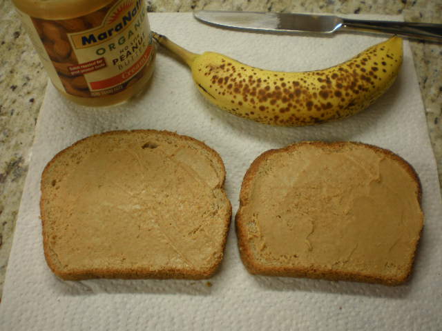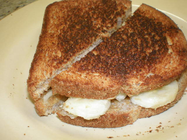 I thought the sandwich was excellent, though I clearly did not use enough peanut butter.  I thought it would be nice and ooey-gooey but it kind of just soaked into the bread.  So next time I will double up on the peanut butter!