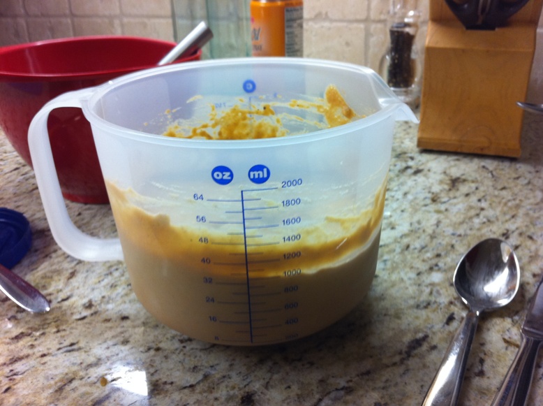 When I make pancakes I like to use this 8 cup pitcher/bowl thing: