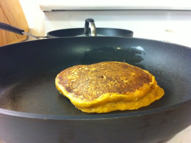 GORGEOUS!  The pancakes had a beautiful orange color, a nice spicy smell and they puffed up really thick in the pan.  I love thick, puffy pancakes.