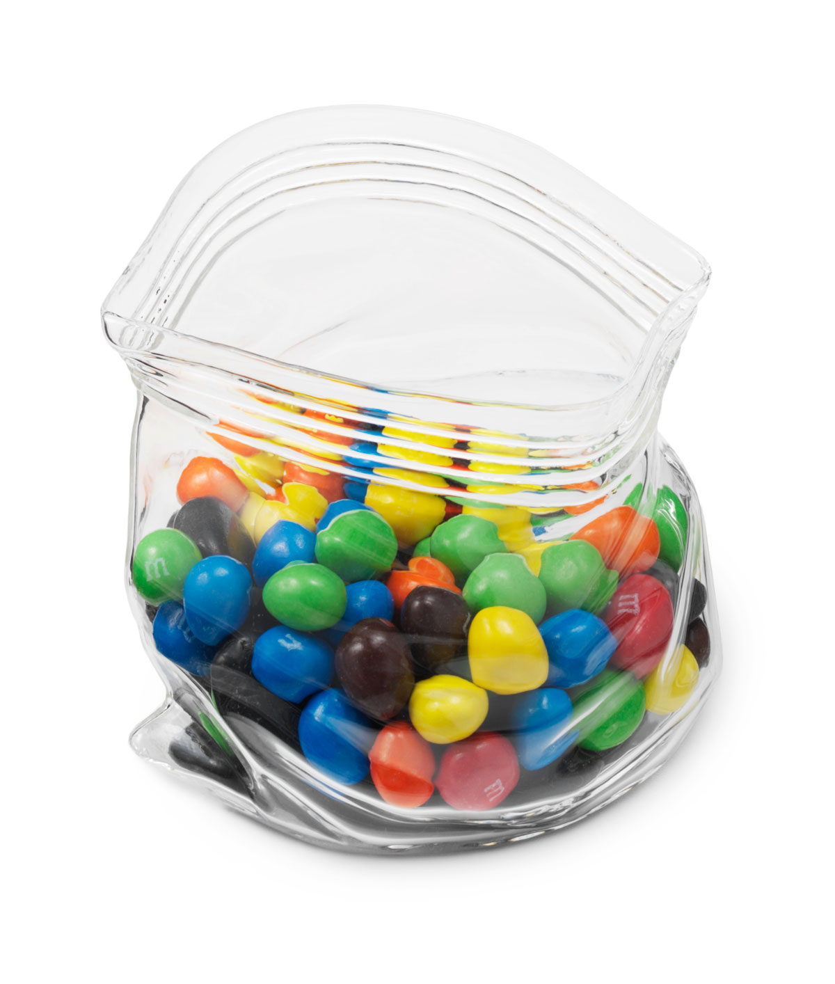 This glass bowl looks like a plastic zippered bag.  Ha!  This would be fun for someone’s desk at work.