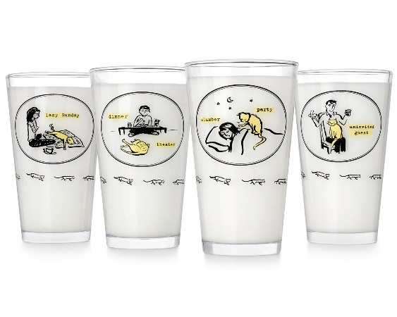 These glasses have pictures of cats doing annoying “cat” activities.  I found them hilarious since I have four cats.  The uninvited guest one is perfect for this house.  The cats are always jumping on our laps while we are eating no matter how many times we swat them down!  In fact one of them just tried to get on my lap just now.