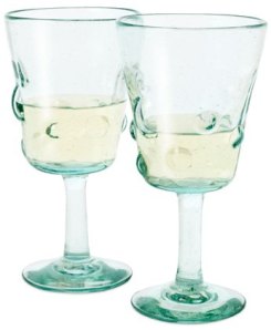 These glasses are made from recycled car windshields and windows.  There are also several other types of glasses, vases and jewlery made from recycled windshields on the website.