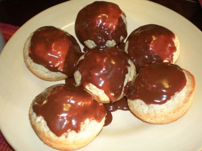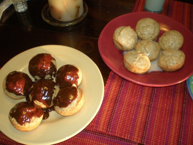 Strangely I liked the lemon better! The lemon flavor seemed to go better with the dough. The chocolate ones were good, but I think there’s a better recipe for chocolate glaze somewhere out there. This glaze served its purpose because I needed something really quick, but next time I’ll take a bit more time.