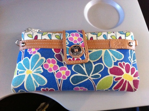 It holds all my wallet-y thing like money, ID and credit cards. And it has a zipper pocket that my phone fits in. Finally it has a detachable shoulder strap or a wrist strap. So I can carry it as a wallet in my backpack while en route, then attach one of the straps and carry it as a purse once I arrive.