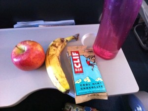 I also packed a tangelo, a couple of Larabars, a bag of raw almonds, more Clif Bars and a couple of Kashi bars that are not pictured. I told you I need a LOT of snacks. 🙂