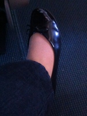 2. When it comes to shoes I like my black flats the best. Easy on and off and can be dressed up or down. Comfortable for walking around the airport.