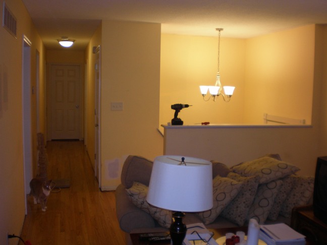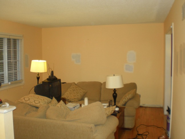 I mentioned in my post last Saturday that I was about to embark on painting my living room. I wasn’t all talk, I actually got started on this project and have made a good dent in the work. The reason why this is a big project is because my living room is not just one room. It extends down the hall, through the entryway and downstairs a bit. So ALL that has to be painted, including all the trim. Here is the living room: