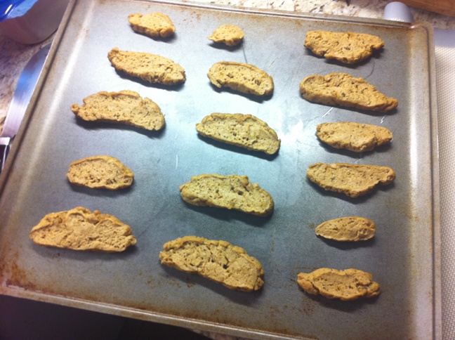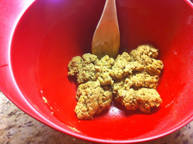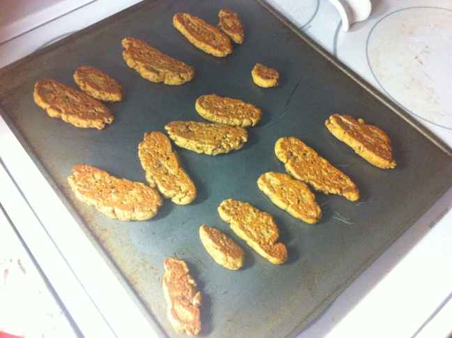 Then I sort of formed it into a log and sliced pieces off. I layed the pieces out on a baking sheet.