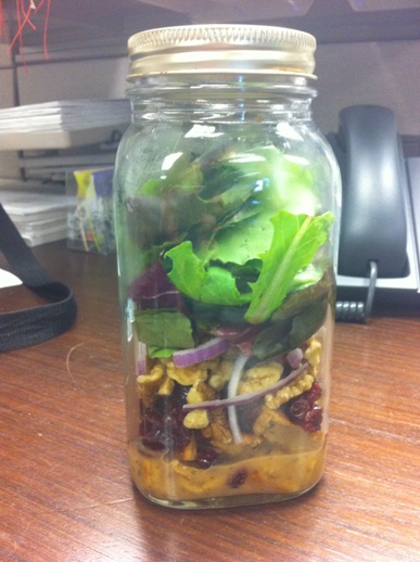 This is a brilliant idea. I never thought of putting salad in a jar and I love jars and use them for everything.