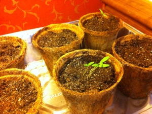Our seedlings have finally started sprouting!! In the picture below we have two pots of Roma tomatoes getting started in the world.