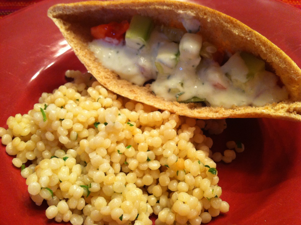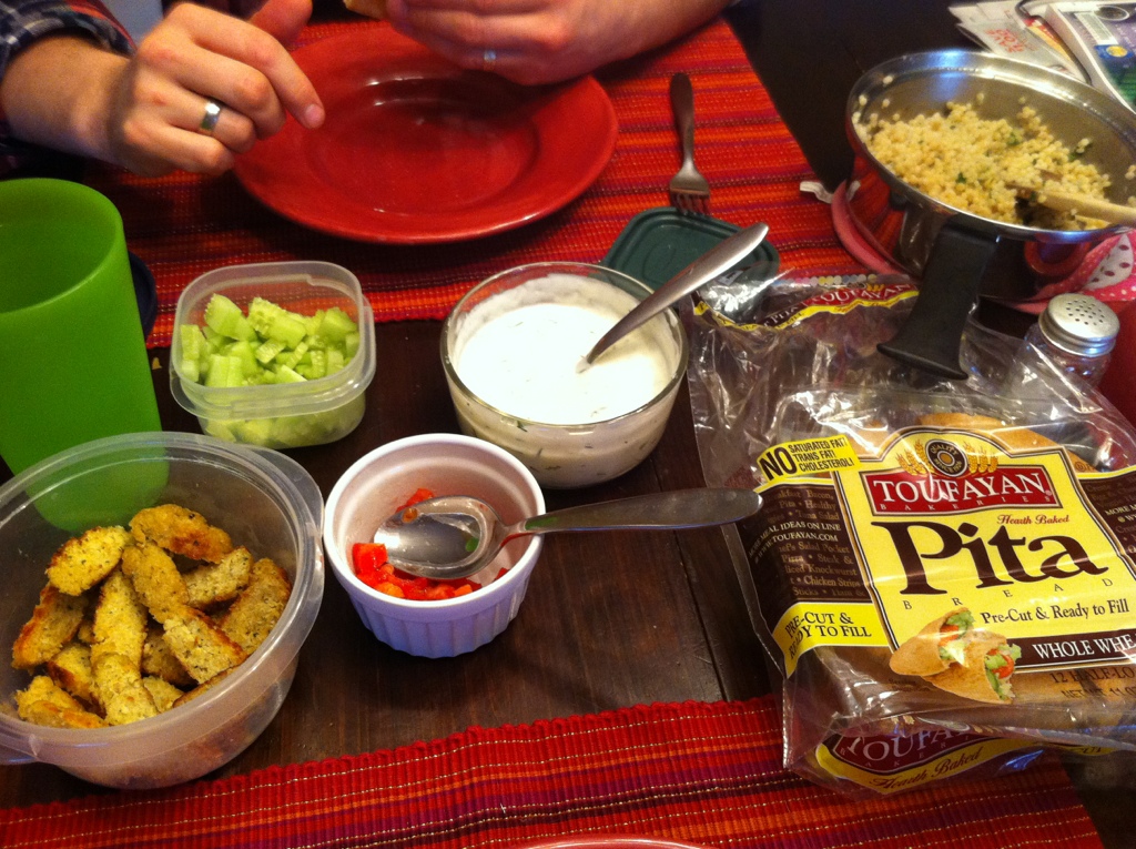 Last week we added a new dinner to our routine – Greek-style pitas with homemade tzatziki sauce. I am not Greek so I can’t vouch for the authenticity of this dinner, but it was tasty and that’s all that really matters.