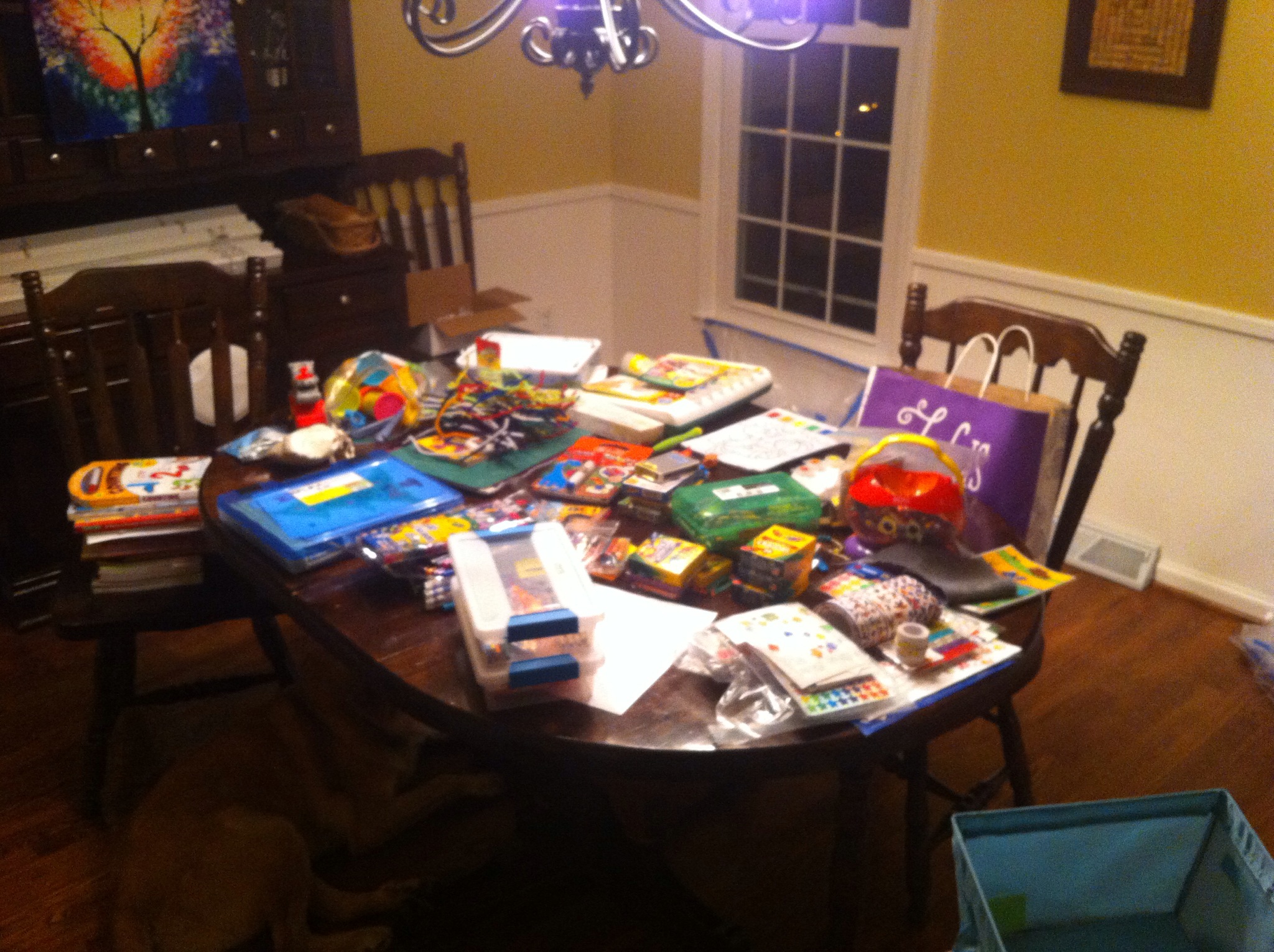 I sorted out all the trash and used up supplies that needed to be discarded. Then I made a list of everything that was in the drawer and started grouping it into categories like stickers, crayons, markers, stamps, etc.