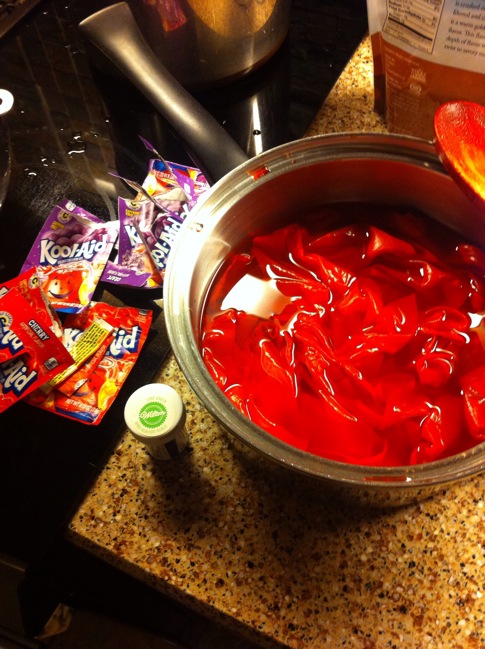 Nourishing Minimalism linked to Sarah’s Silks on Amazon. They looked beautiful but a little pricey at $14.50 a pop. I figured we would want at least four of them in various colors. So I took to Pinterest and found several blogs explaining how to dye plain silk with Kool-Aid.