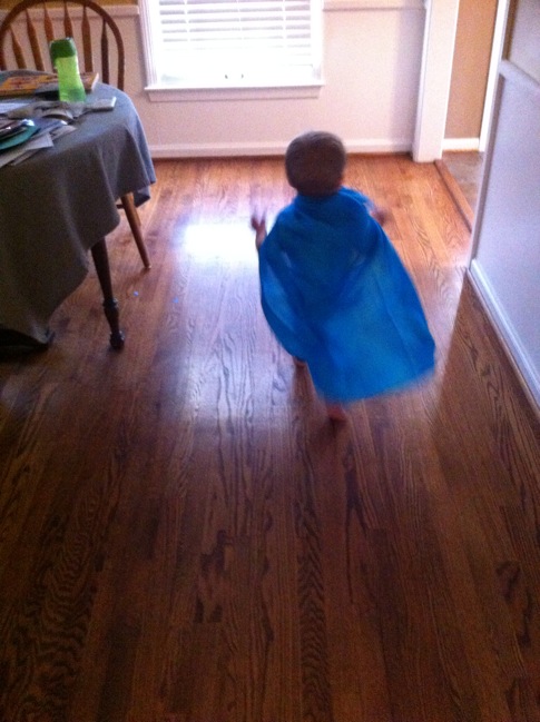My boys have enjoyed the play silks over the past few months. We frequently use them as superhero capes (including Mom and Dad) and run around the house in them. Then just the other night we tied them all together in a big long rope and drug it around the house. It’s fun to see their little minds come up with different ideas for the silks.