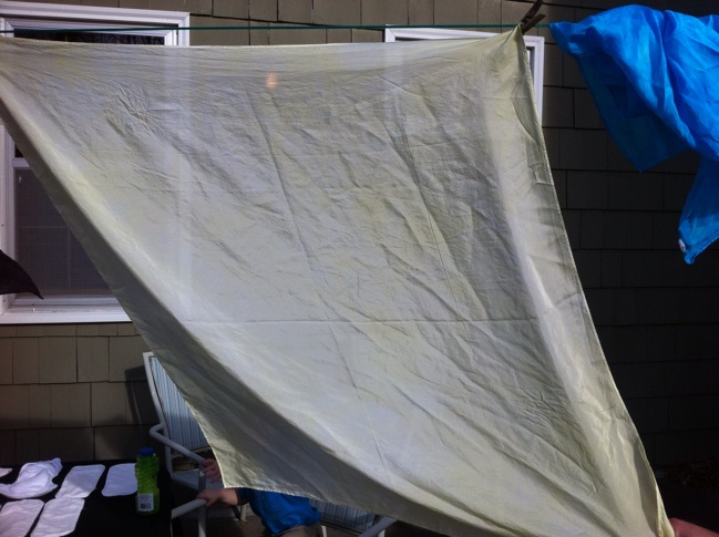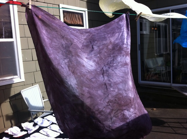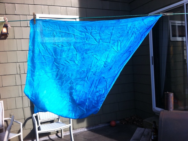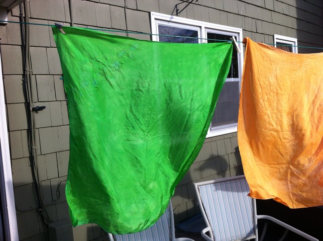 All folded up they look great, but when you spread them out, each silk has a somewhat mottled or “tie dye” appearance. This was not intentional but it doesn’t bother me. I hung up the silks in the sun to try to get some good pictures of the colors.